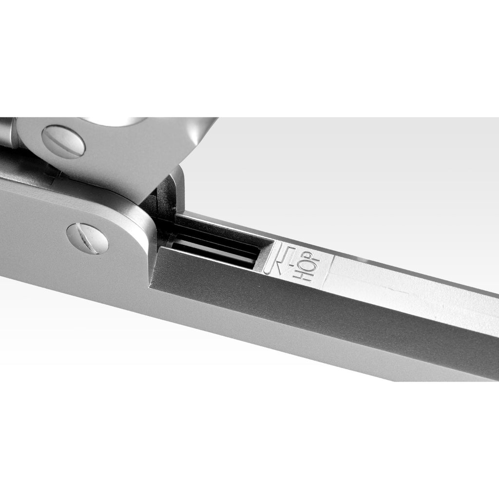 アイボリータイプのグリップを装備した、「ネイビー」のシルバーモデル