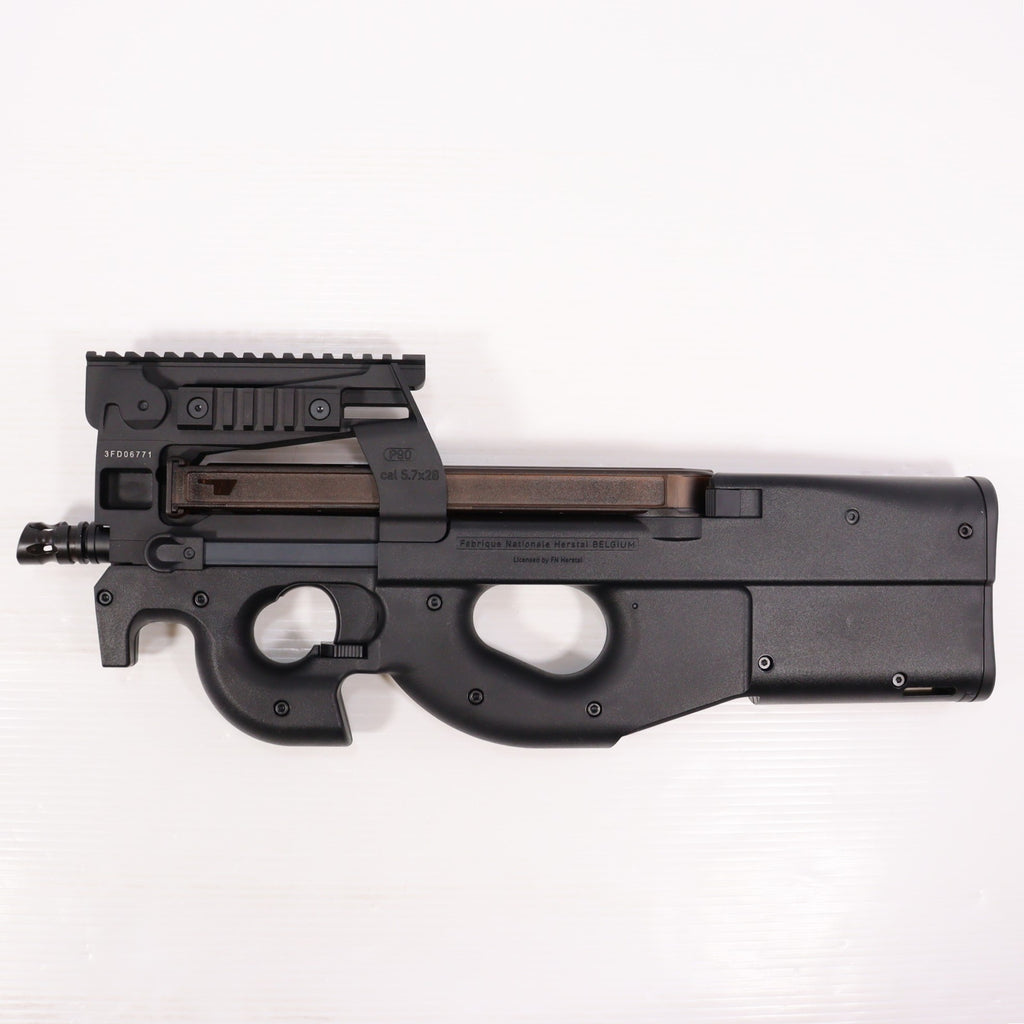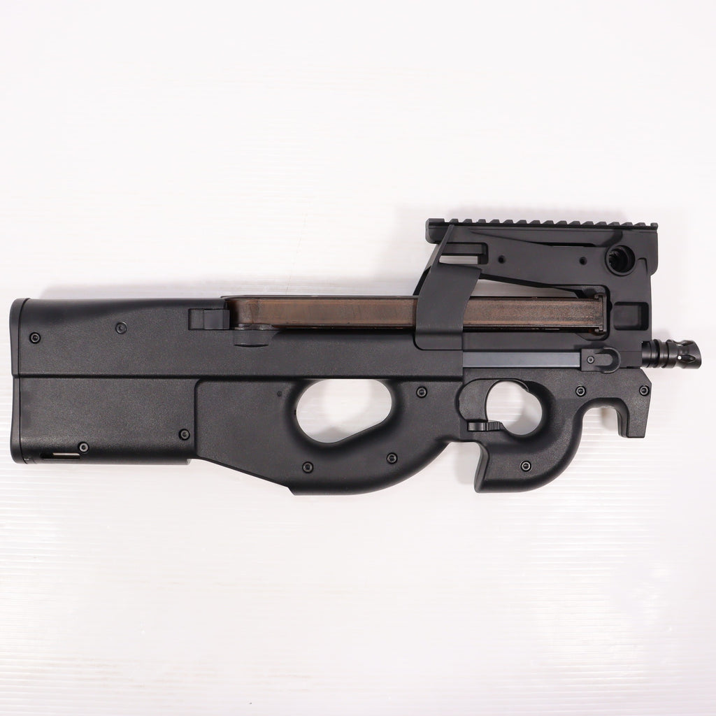 FN P90R電動ガンは、MIL-STD 1913ピカティニートップレールを備えた、トップローディング式のブルパップ短機関銃であるFN P90 タクティカルSMGを1:1でモデルアップしたものです。