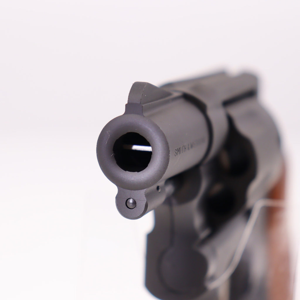 モデルガンとしてもタナカワークス社Kフレームモデルガン系最新の内部機構Version.3を搭載し、得意とするヘビーウェイト(高比重)樹脂製の本体に高級ウォールナット(アメリカクルミ)製のグリップにウエイト(重り)を入れて、更に重量アップして製作しました。