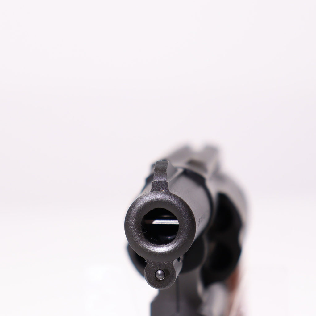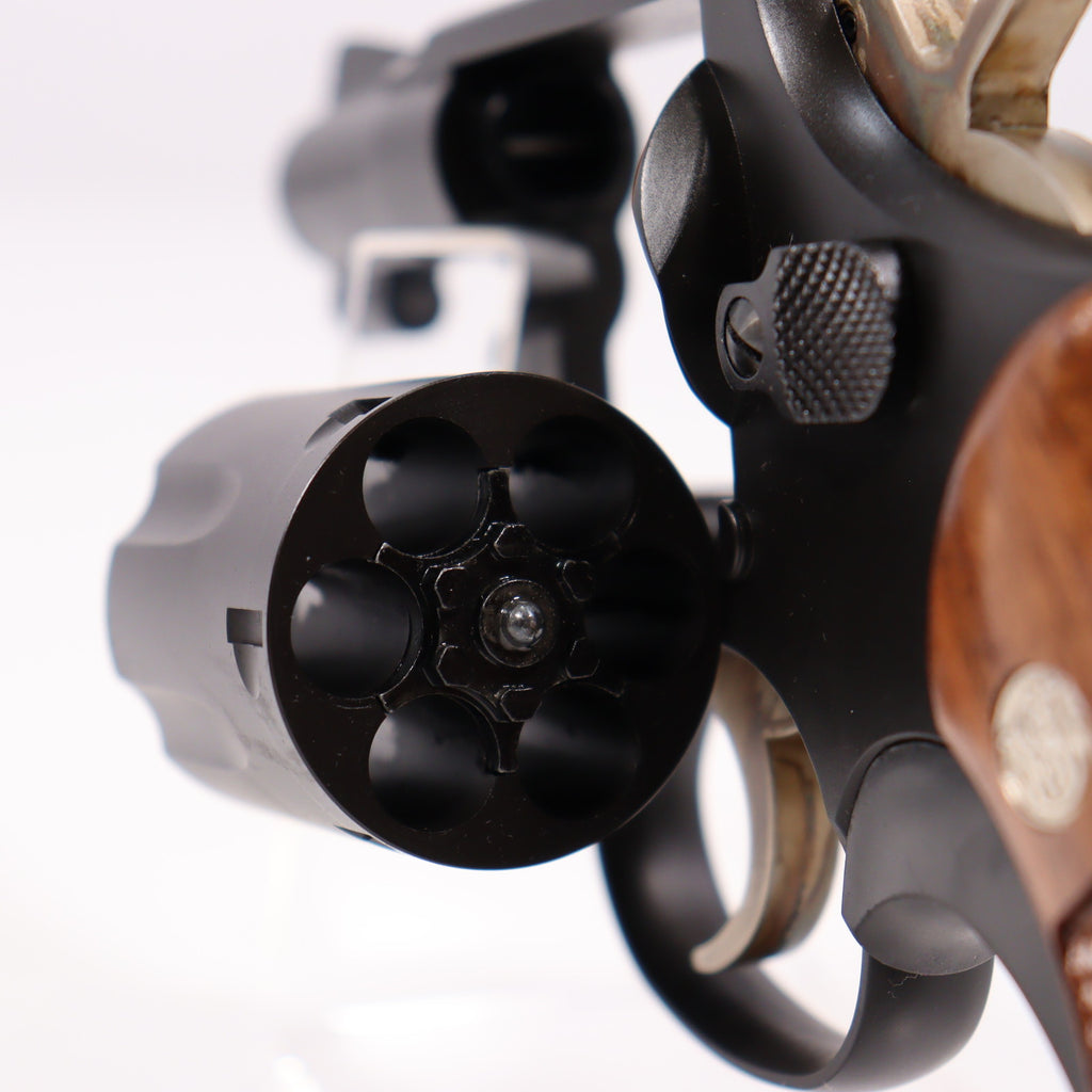モデルガンとしてもタナカワークス社Kフレームモデルガン系最新の内部機構Version.3を搭載し、得意とするヘビーウェイト(高比重)樹脂製の本体に高級ウォールナット(アメリカクルミ)製のグリップにウエイト(重り)を入れて、更に重量アップして製作しました。
