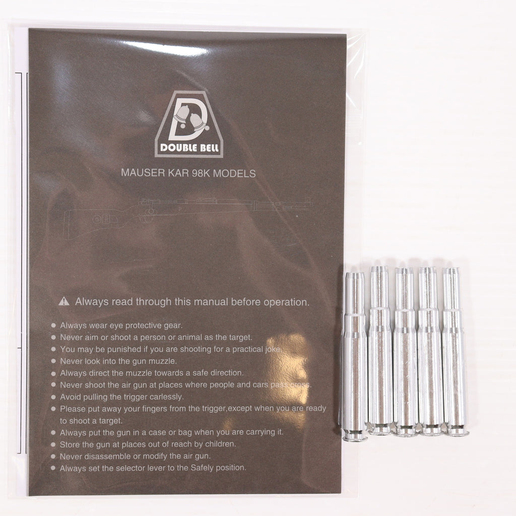 ■タイトル:DOUBLE BELL(ダブルベル) エアーライフル Kar98k 排莢式エアコッキングガン 専用カート5発付き リアルウッド版(No.101A) (18歳以上専用)