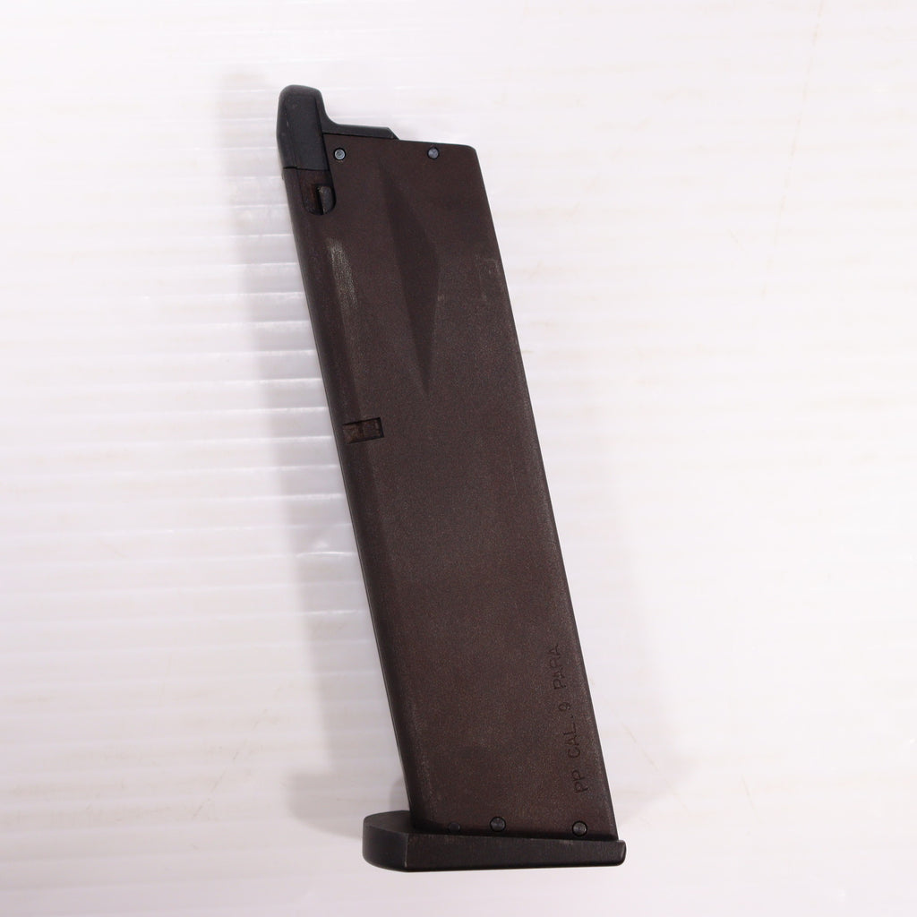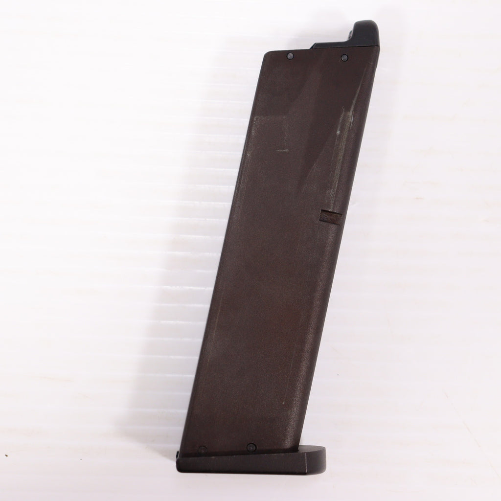 重厚なHWスライドをシステム7エンジンで駆動する、豪快なブローバックは従来通りで、近代的なアンダーレイルと、ラバーグリップのラインが美しいプレミアム仕様です。