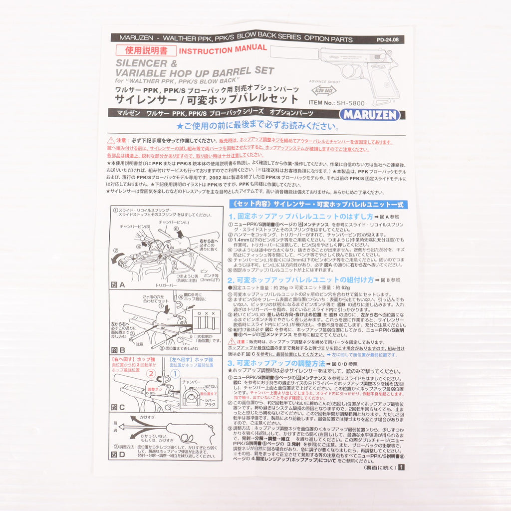 【中古即納】[MIL] マルゼン ワルサーPPK・PPK/S用サイレンサー 可変ポップバレルセット(20240808)の商品説明