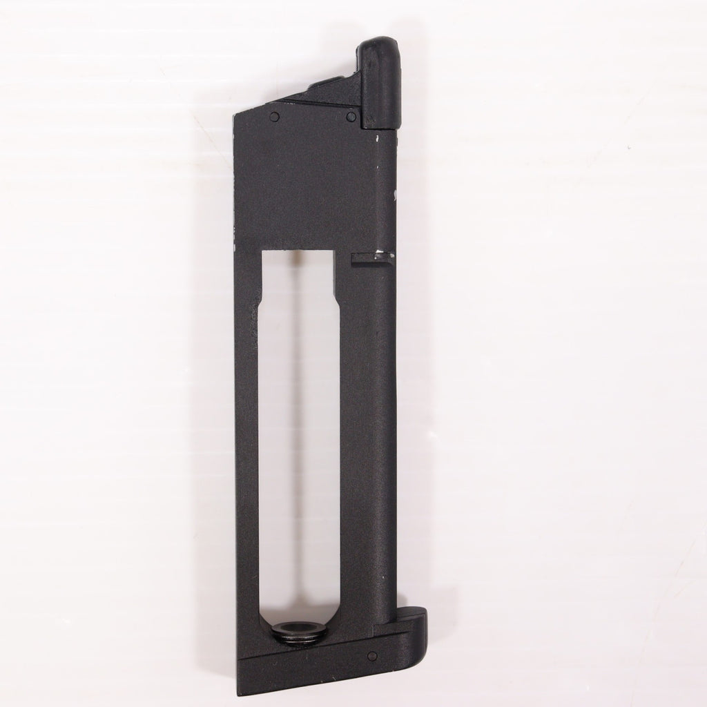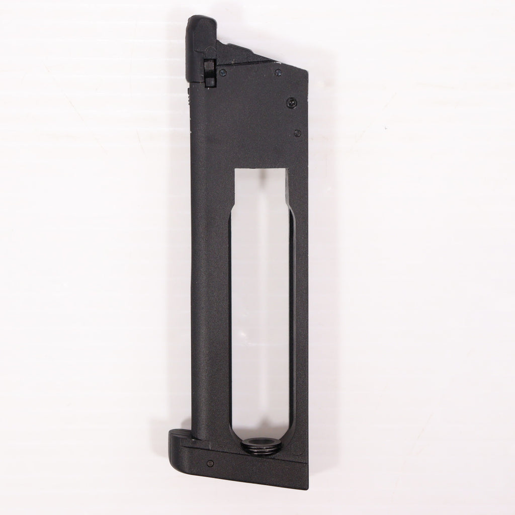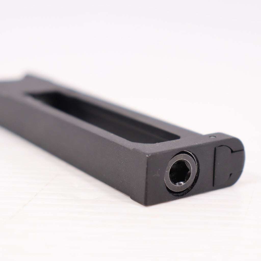 マガジン側面に放出バルブの回転止めの「イモネジ」が備わっています。