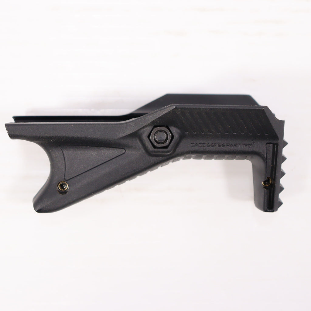安定した射撃姿勢を補助するバリケードストップ付きアングルグリップです。
