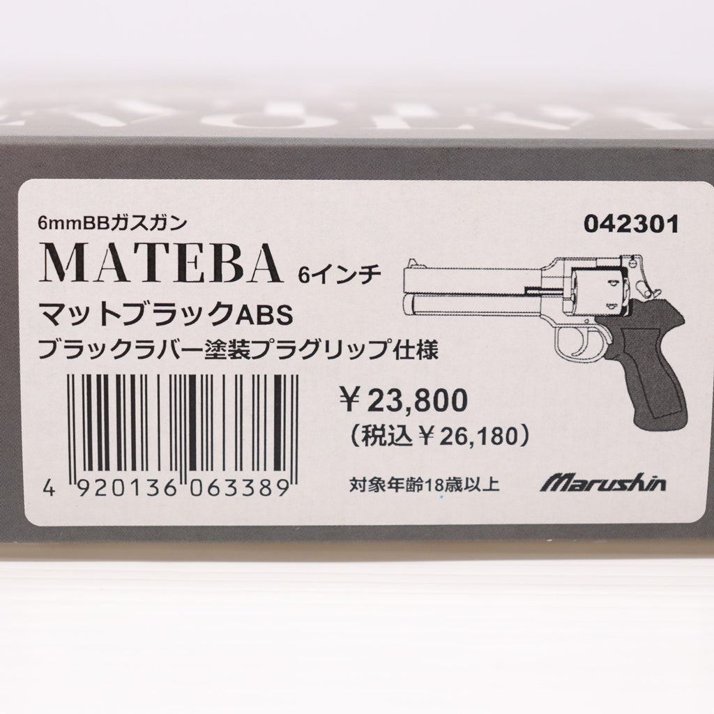 ■タイトル:マルシン工業 ガスリボルバー 6mmBB Xカートリッジ マテバ 6インチ マットブラックABS ブラックラバー塗装プラグリップ仕様 (18歳以上専用)