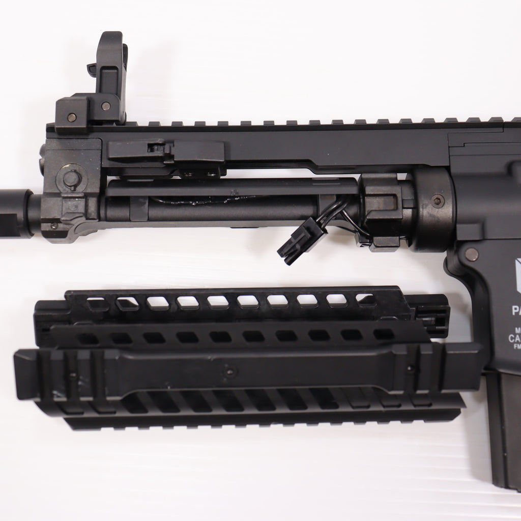 コンパクトで取り回しやすいM4ベースのボディには、様々なオプションパーツを搭載可能なレイルハンドガードや、操作性を向上させるカスタムパーツを装備。