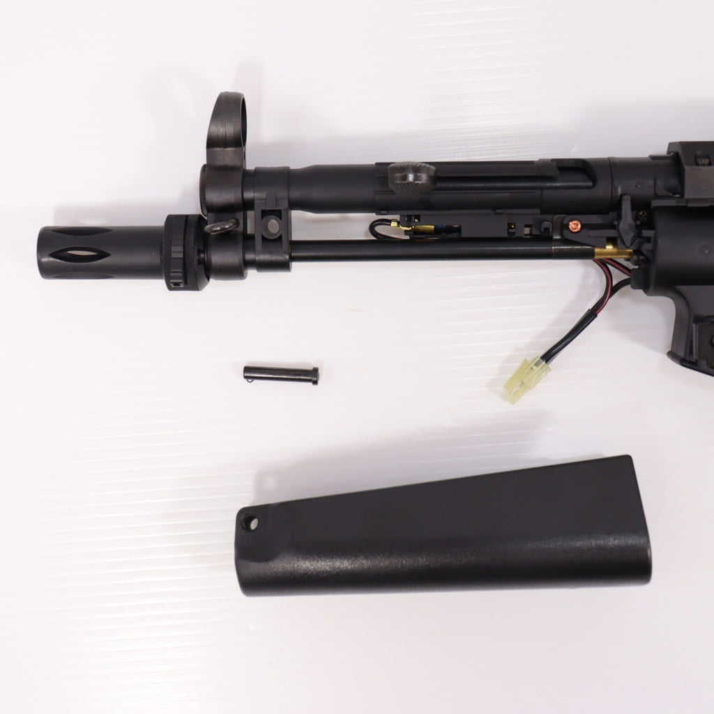 東京マルイではMP5-Jに装備されている最新のリトラクタブル(伸縮)・ストックを実物を元に再現しました。