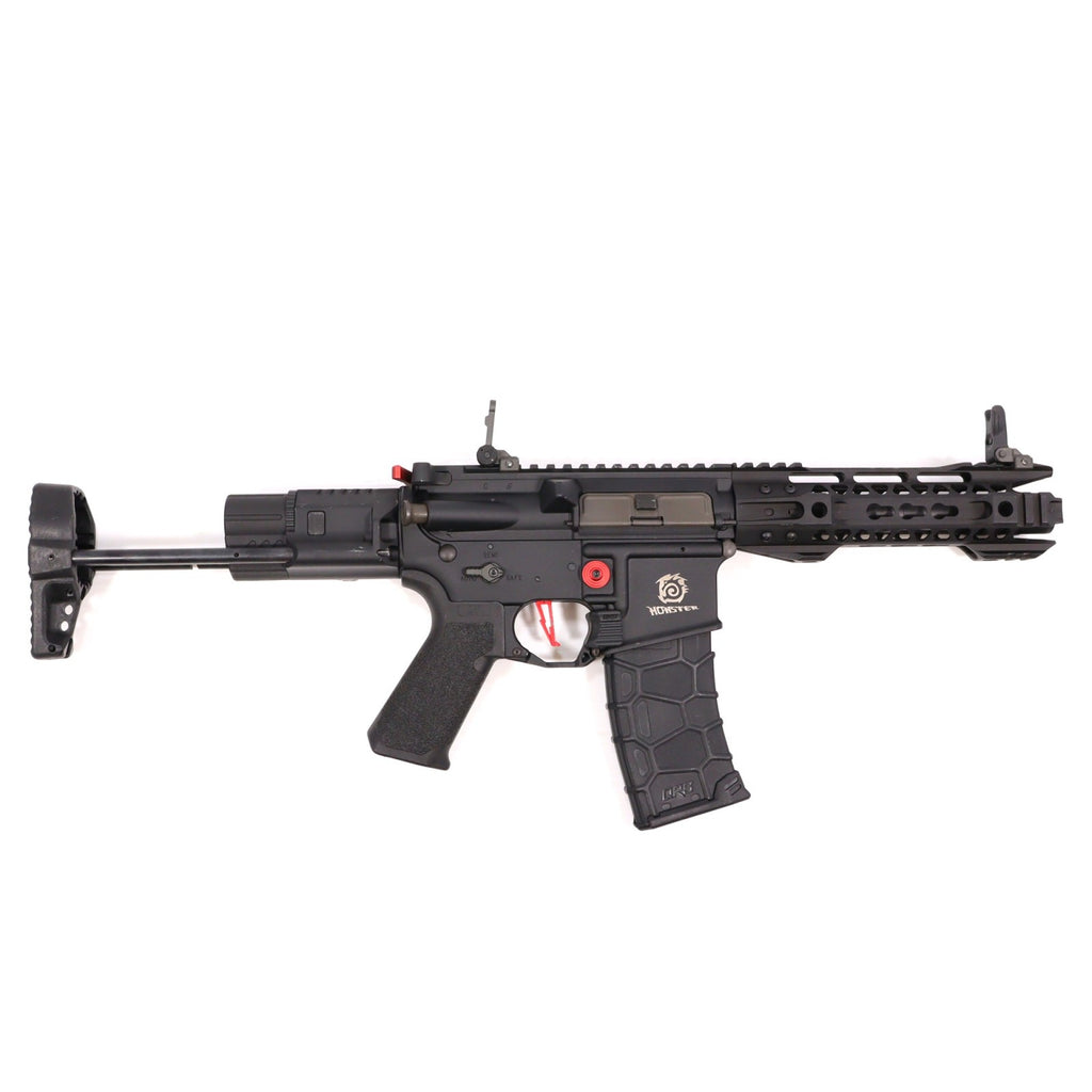 ■商品状態:外箱ハードガンケース仕様/本体・マガジンすり傷(少)/カスタム(KM企画 φ25スリムサイレンサー 60mm・G&P MOTS II ファントム KeyModハンドガード 8インチ)/付属品(マガジン付属)/平均初速 91.1m/s