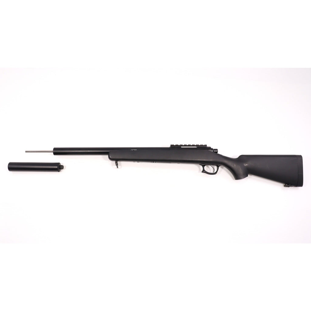 ■商品状態:箱傷み(大)/内箱一部なし/説明書なし/本体・マガジンすり傷(多)/金属パーツ変色(少)/レシーバーマガジンキャッチ周辺ひび割れ(大)/カスタム(ライラクス VSR-10 カスタムトリガーガード・MAPLE LEAF VSR-10 ラージマガジンキャッチ・ノンブランド VSR-10用 ステンレスインナーバレル 430mm・シリンダー開封加工)/付属品(マガジン・サイレンサー付属)/平均初速 93.4m/s