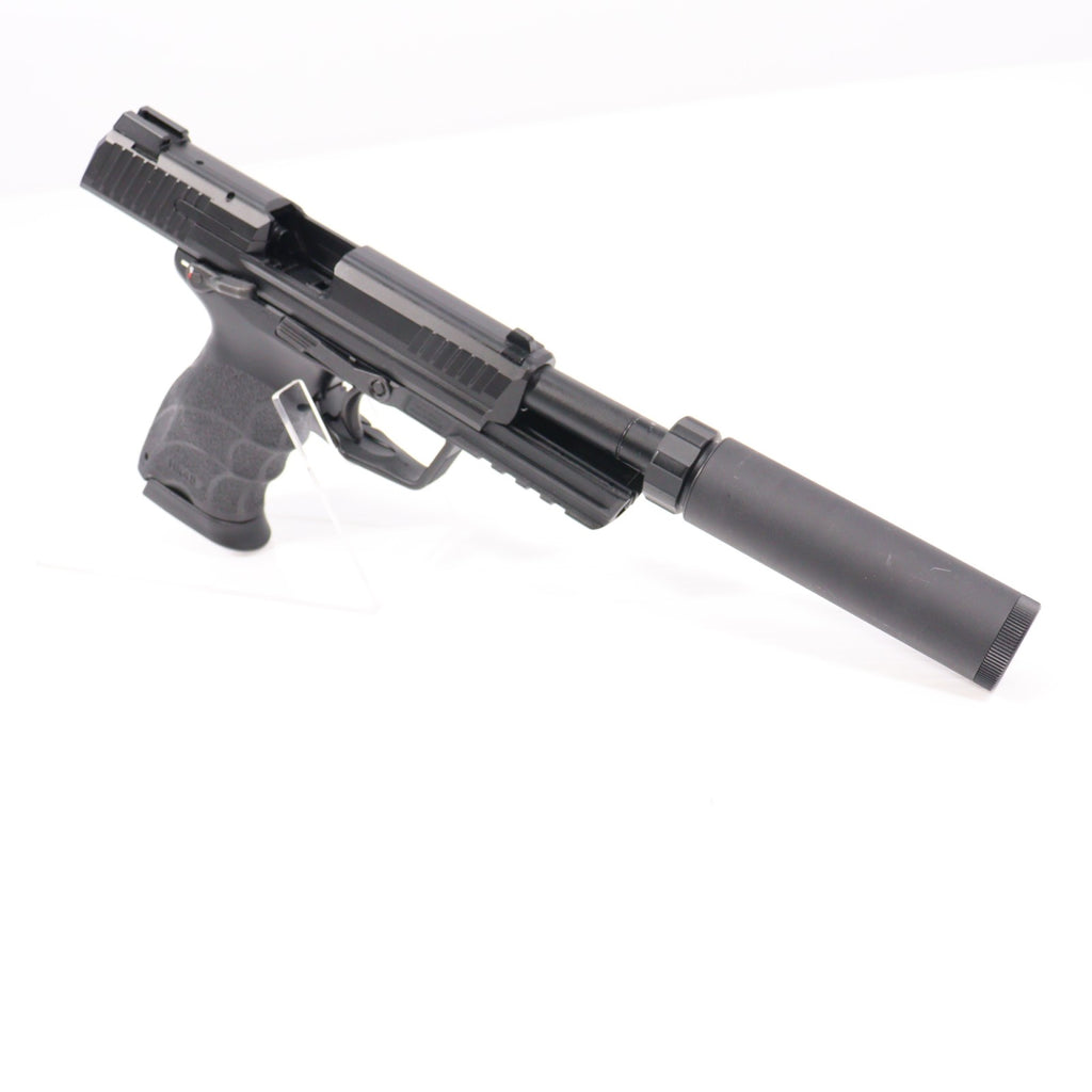 金属と樹脂で構成されたアウターバレルには、付属のHK45タクティカル専用サイレンサーが装着可能となっており、「ガスブローバック+サイレンサー」の組み合わせが楽しめます。