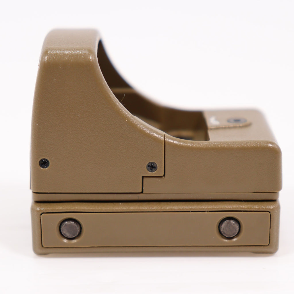 ガスブローバックのハンドガンに装着しても作動に影響が出にくい、小型で軽量なドットサイトです。