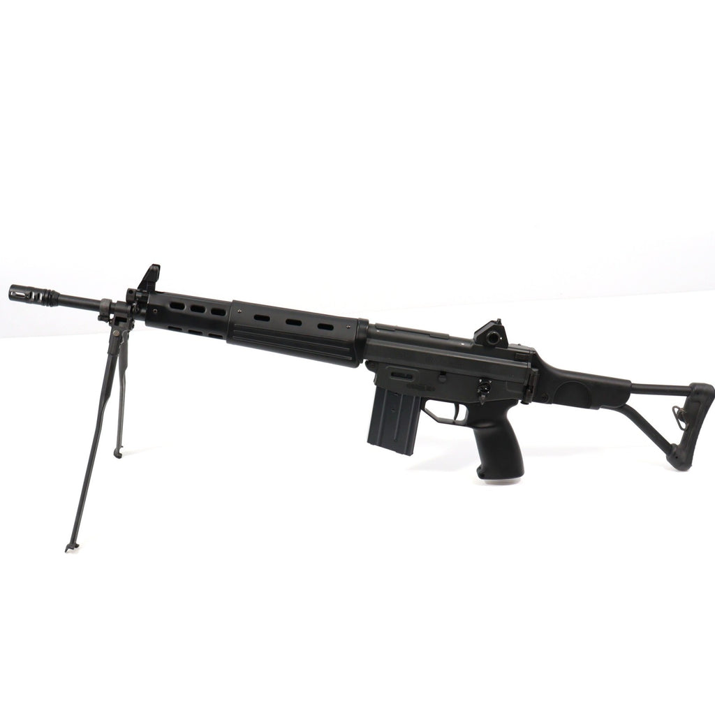 コッキングハンドル操作による初弾の装填や、ボルトオープンとマガジンチェンジ後のボルトキャッチ操作、開閉可能なダストカバーとグリップ底部、アウターバレルに装着したバイポッドの展開、折りたたみ可能なストックなど、本物同様の機能を忠実に再現しています。