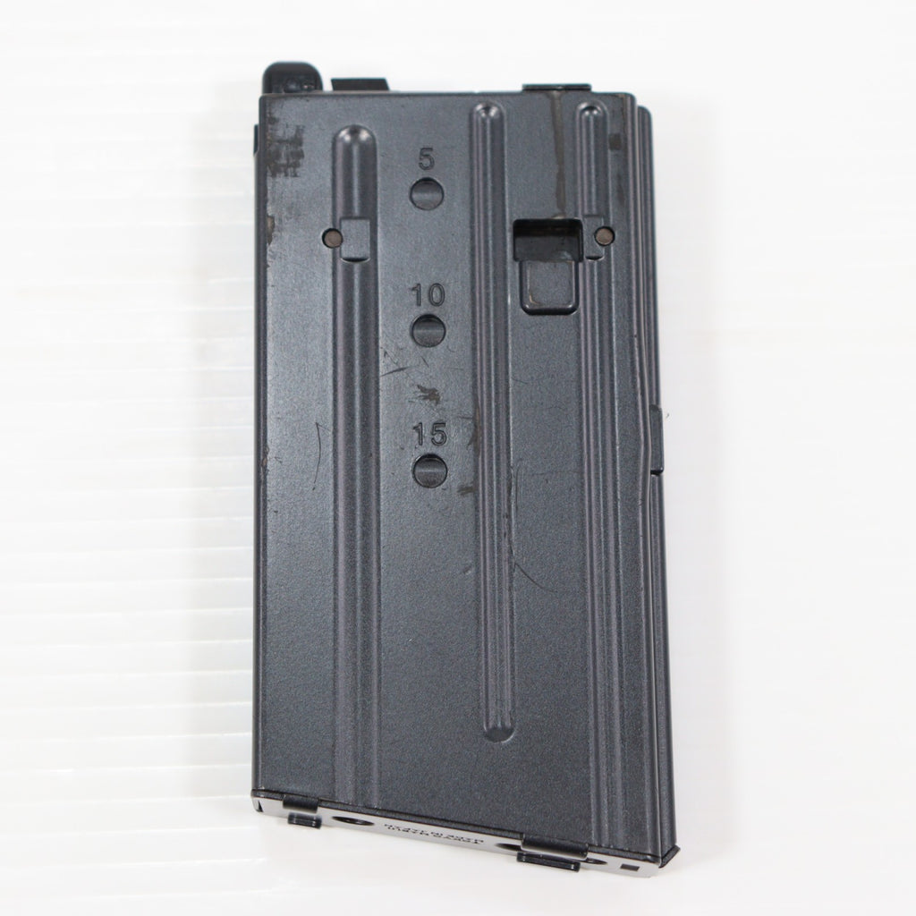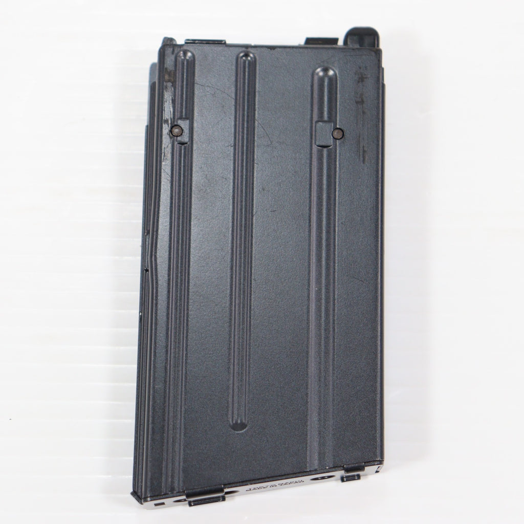 装弾数20発、アルミダイカスト製のマガジンは、左側面の残弾確認穴の形状を再現しています。