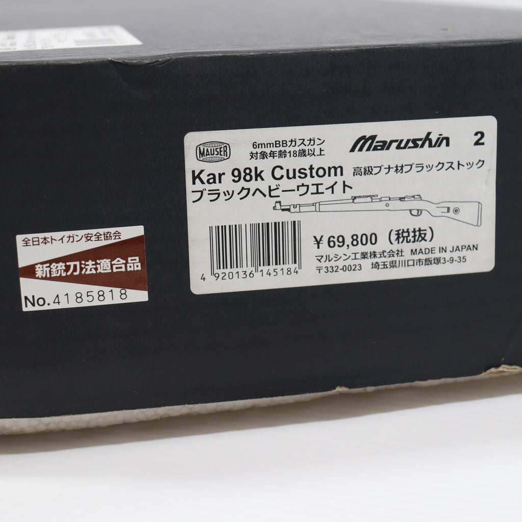 【中古即納】[MIL] マルシン工業 ガスライフル モーゼル Kar98k Custom(カスタム) 6mmBB カートリッジタイプ 高級ブナ材ブラックストック仕様 ブラック HW(ヘビーウエィト) (18歳以上専用)(20201121)の商品説明