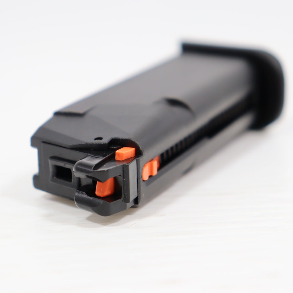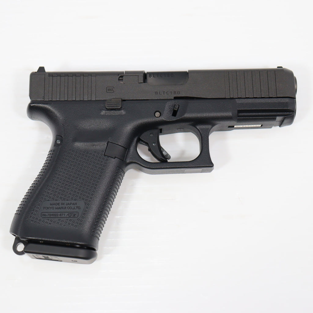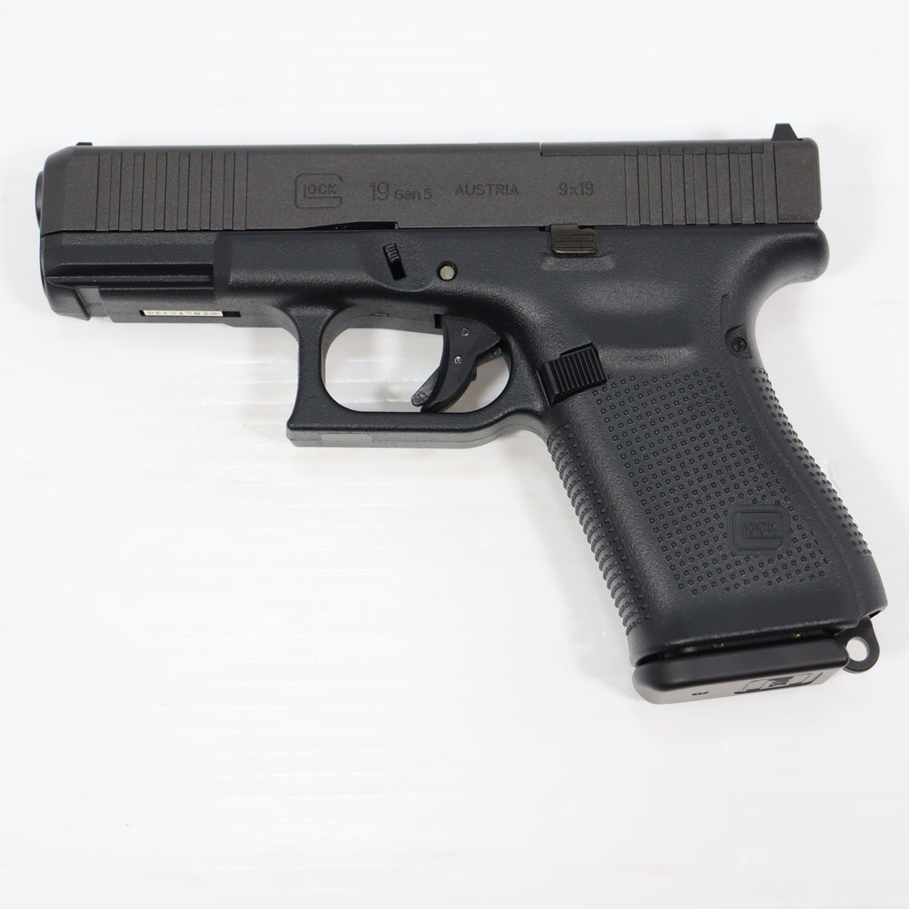 スライドフロント部の変更点(面取りやセレーションの追加)や、フィンガーチャンネルのないグリップ、アンビ仕様になったスライドストップなど、G19第5世代(Gen5)の特徴を再現しています。