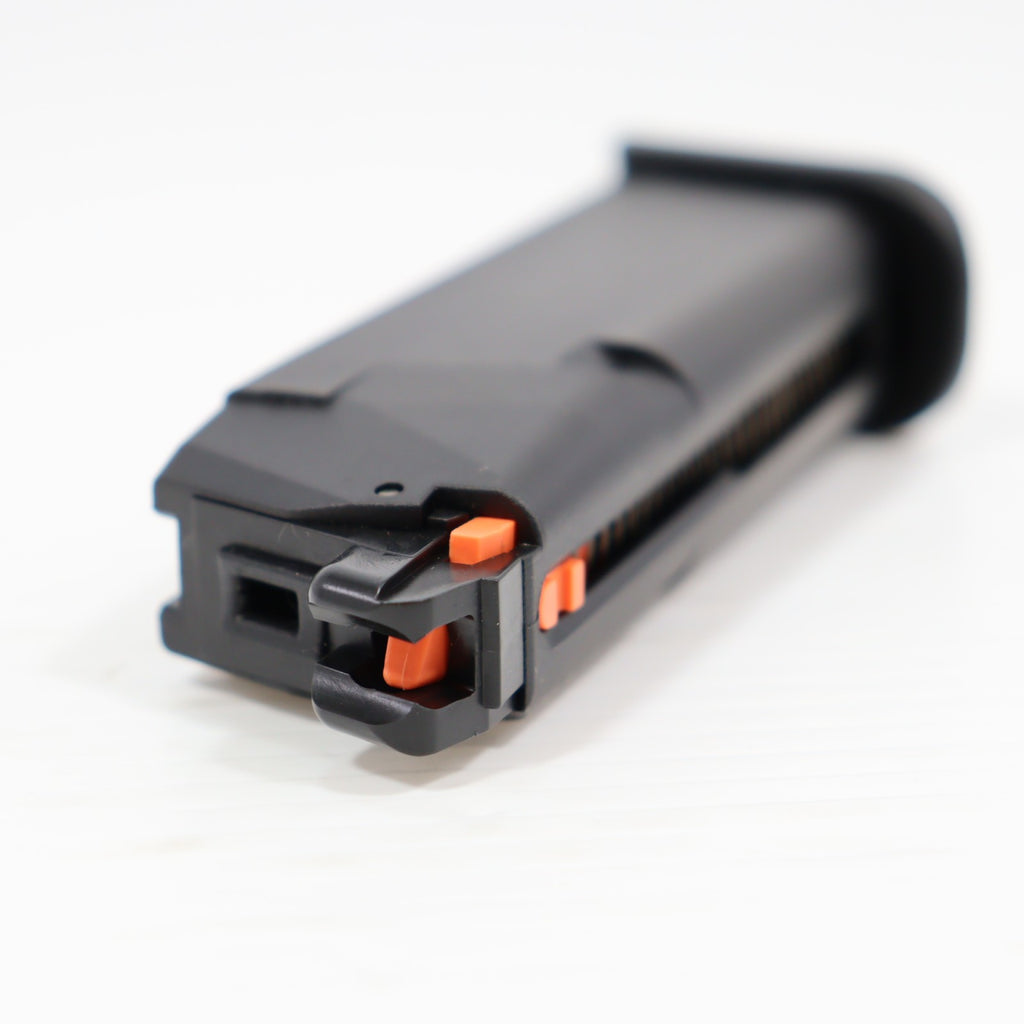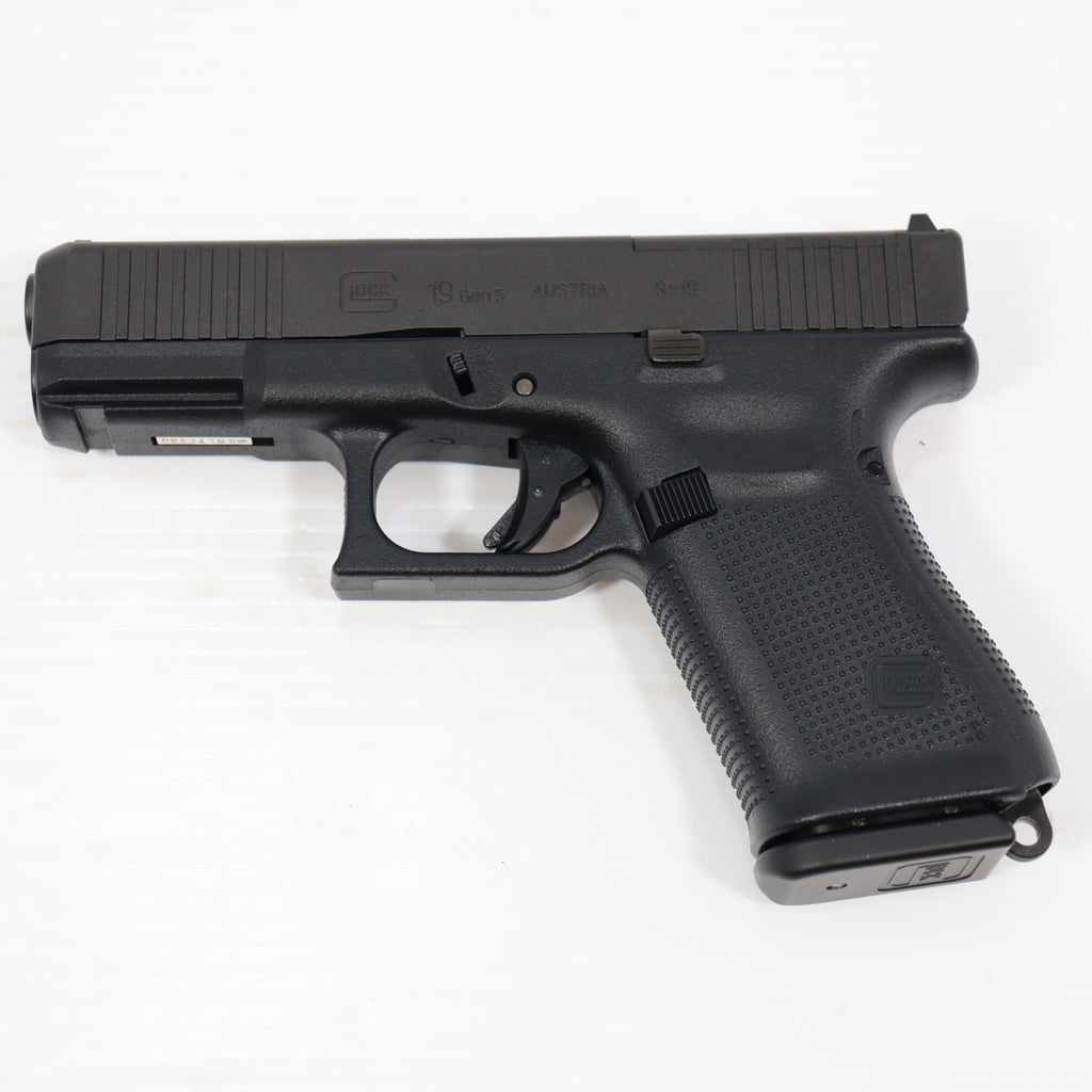 スライドフロント部の変更点(面取りやセレーションの追加)や、フィンガーチャンネルのないグリップ、アンビ仕様になったスライドストップなど、G19第5世代(Gen5)の特徴を再現しています。