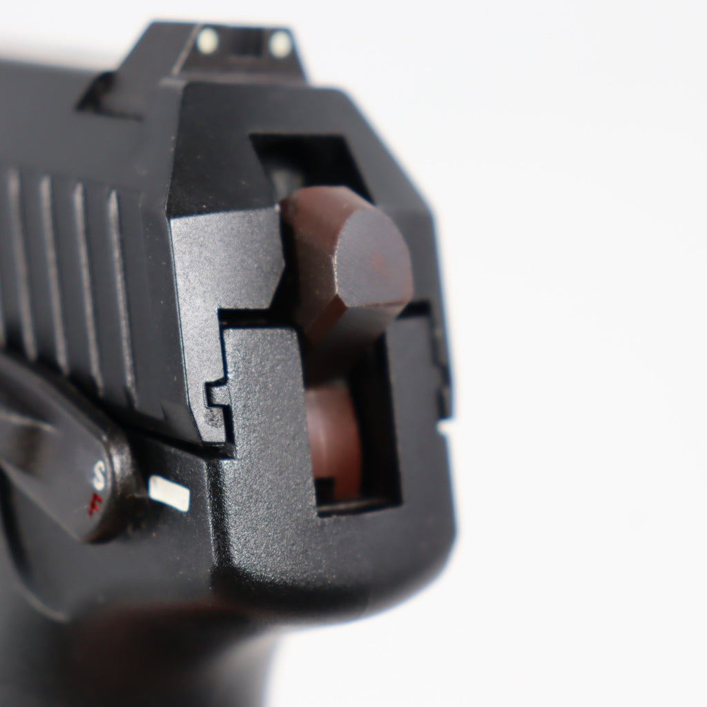 スライドを引いて初弾を薬室に装てんする。